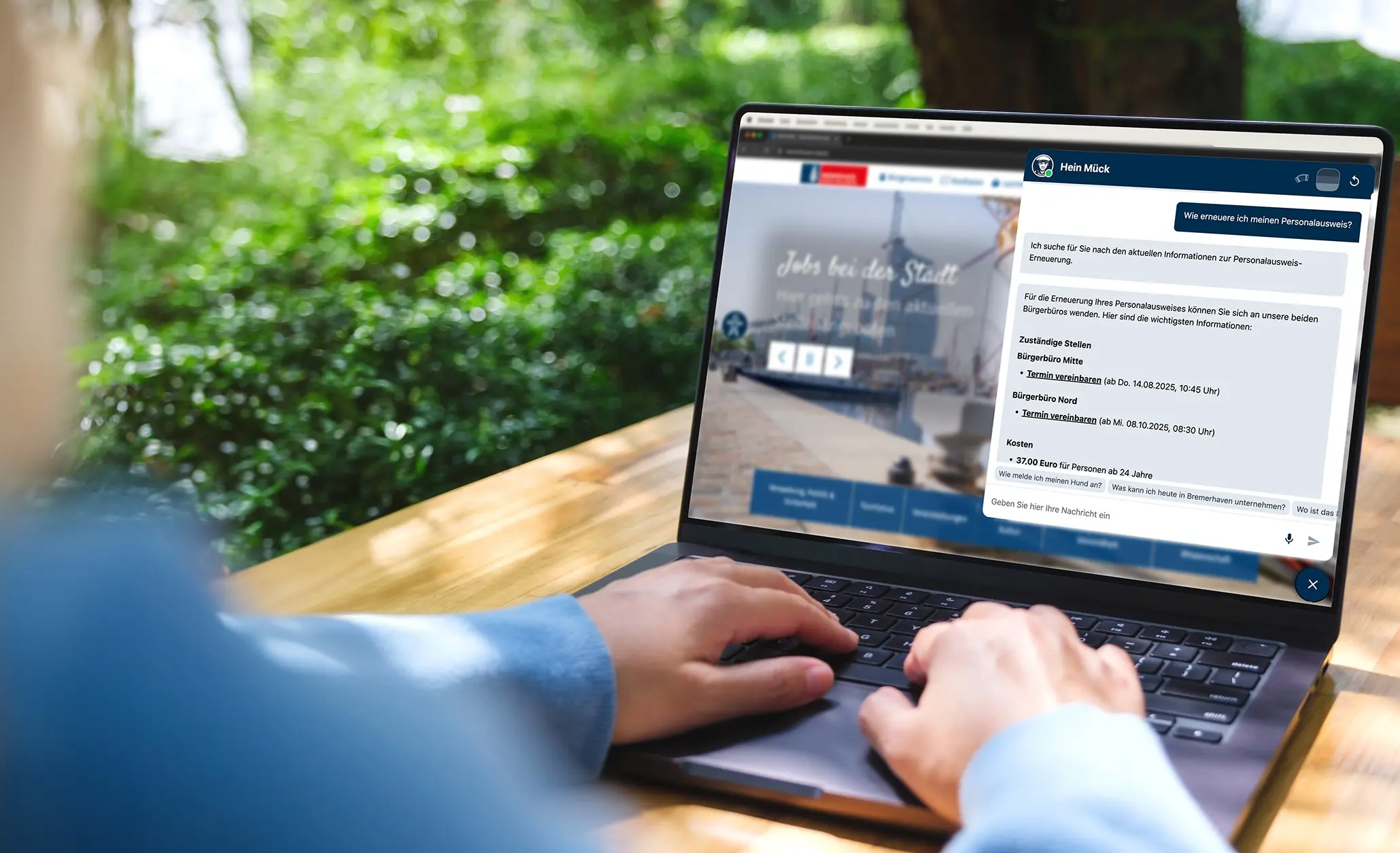 Beantwortet auf Ihrer Website rund um die Uhr Anfragen zu Verwaltungsleistungen, Angeboten und zum Stadtleben - Individuell, mehrsprachig und barrierearm. Erleichtert den Nutzern die Suche auf der Webseite deutlich, reduziert Routineanfragen und schafft so mehr Zeit für persönliche Beratung.